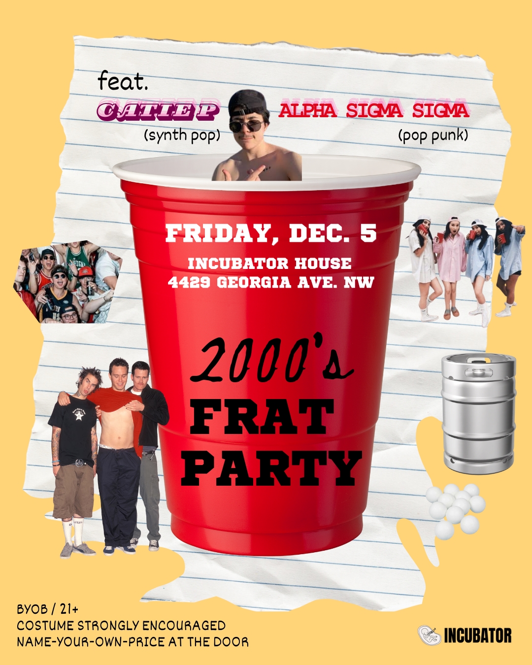 Sup losers! Incubator’s bringing it back to the early 2000’s with a frat themed party and show. Come dressed in a polo, popped collar, or anything else a cool kids wore in 2004.
