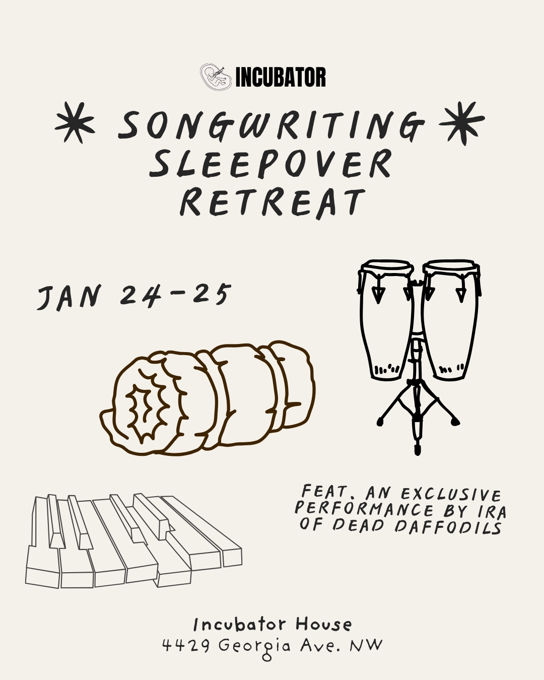 Incubator House 4429 Georgia Ave NW, Washington DC, DC, United StatesJoin RAWRA and Russell for an overnight songwriting retreat at Incubator House focused on mindfulness, simplicity and playfulness.